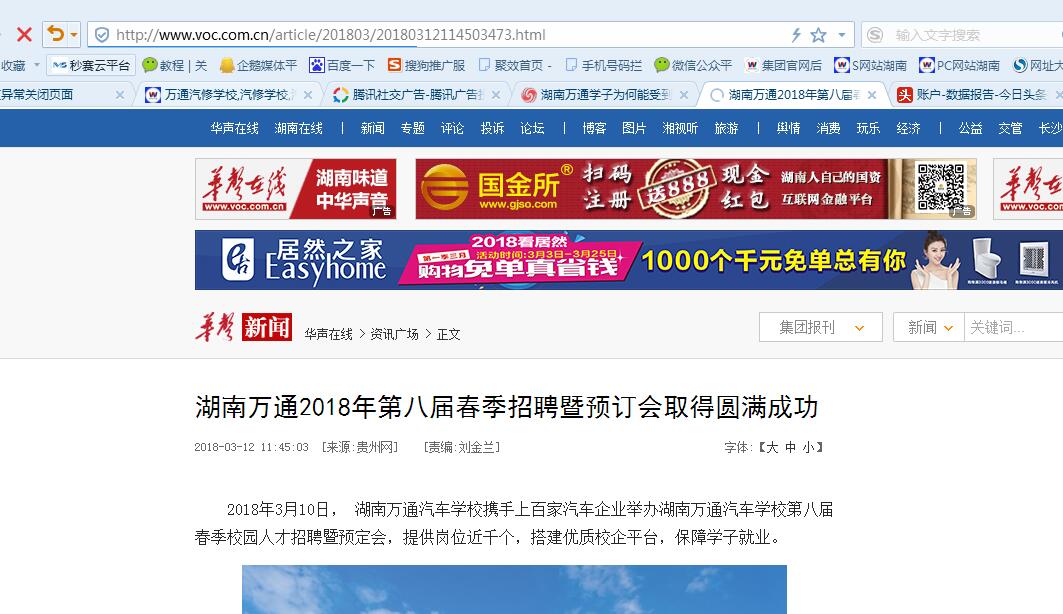 2018年3月10日, 湖南万通汽车学校携手上百家汽车企业举办湖南万通汽车学校第八届春季校园人才招聘暨预定会,提供岗位近千个,搭建优质校企平台,保障学子就业。